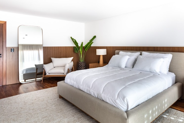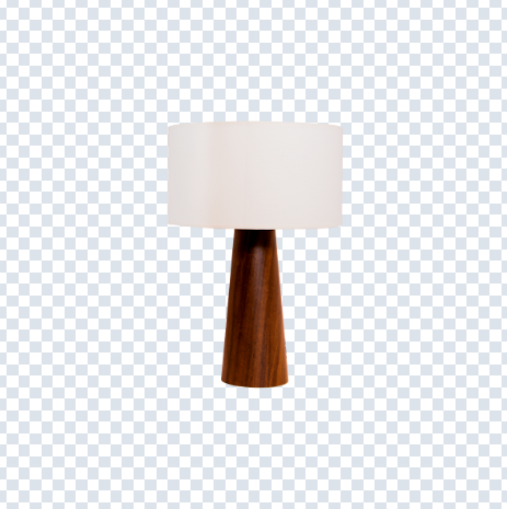 Abajur feito com lâmina natural de madeira e cúpula tecido de algodão cru.