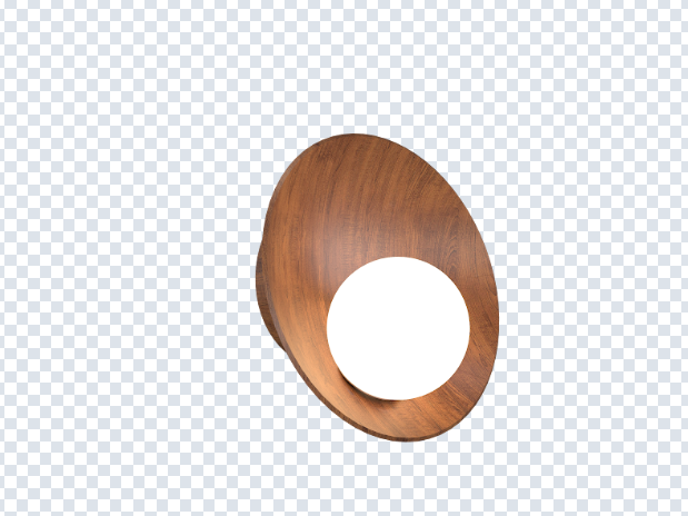 Arandela feita com lâmina natural de madeira e vidro.